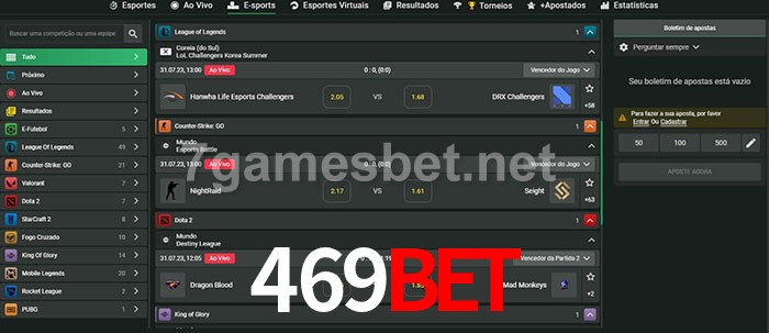 A aposta 469Bet oferece aos jogadores a experiência mais conveniente de apostas em eSports!